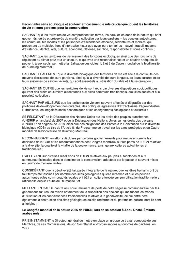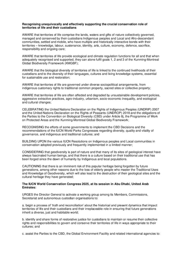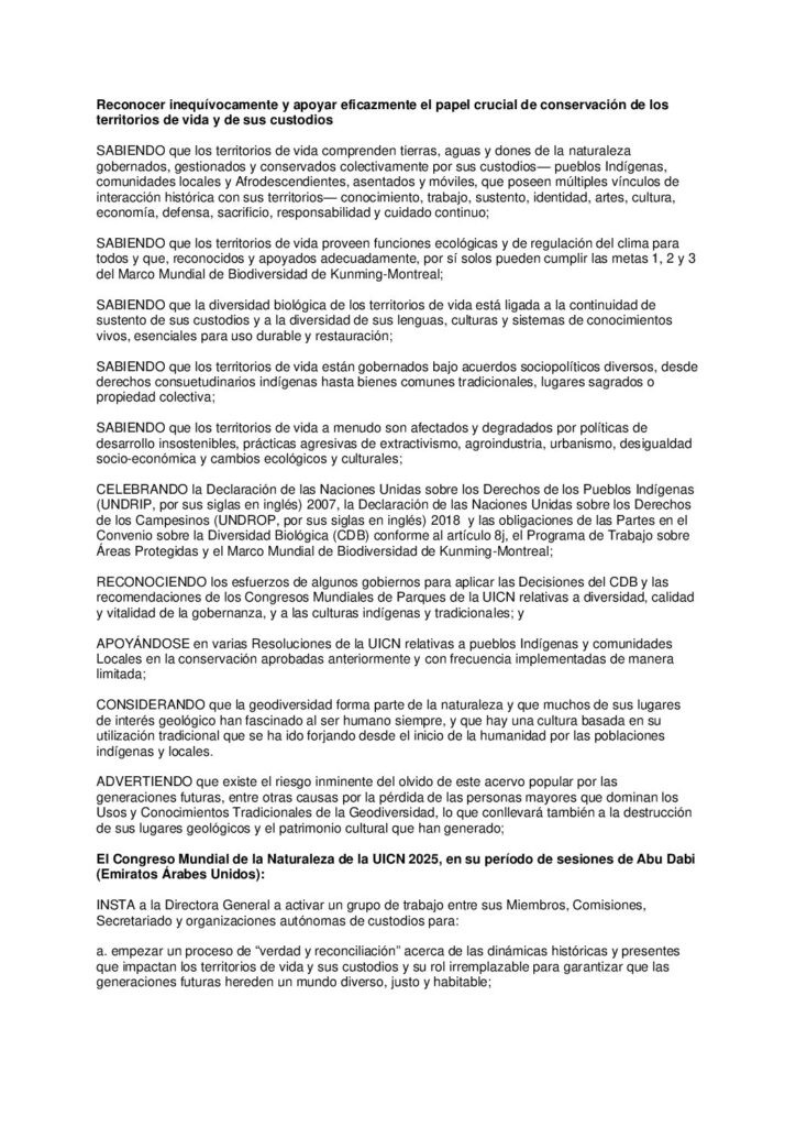 La moción busca «Reconocer inequívocamente y apoyar eficazmente el papel crucial de conservación de los territorios de vida y de sus custodios»